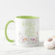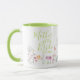 Um presente especial para a mãe da noiva, a caneca apresenta um jardim de flores silvestres em aquarela com "mãe da noiva" em uma tipografia manuscrita elegante em um verde suave que combina com o interior e a alça. Personalize com a data do seu casamento.