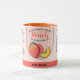 Mãe retro World Class Love Peach Jam Coffee Mug. Peach Jam trabalhado à mão embalado com a etiqueta da mãe do amor. O presente perfeito para o Dia da Mãe ou Aniversário. A design contém fatos nutricionais, informação sobre alergia e mãe humilde como citações.