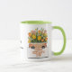 Uma doce caneca de café de Dia de as mães com um tema floral. Apresenta um grande buquê de flores de primavera, compreendendo tulipas, daffodils e margaridas. A frase diz "Mãe, Obrigado, Dia de as mães Feliz" na frente da tipografia moderna. A parte de trás da xícara tem espaço para adicionar sua mensagem para torná-la mais exclusiva. Veja na nossa loja os produtos correspondentes.