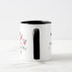 Esta caneca de café tem uma imagem de dois pássaros do amor que sentam-se em um ramo com lotes de flores fúcsia quentes do rosa toda ao redor. A mãe da noiva é escrita abaixo. Você pode personalizar os nomes e a data dos noivos da cerimónia de casamento no outro lado do copo. Gráficos por JD Digi em Mygrafico.