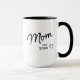 Uma caneca de mãe moderna em preto e branco criada para homenagear o momento em que sua história mudou. O título de roteiro minimalista, o detalhe do ano de Est e o acento de coração sentimental se unem em um design limpo e atemporal que funciona para anúncios de bebê, novos marcos de mãe, aniversários ou presentes cotidianos. Personalize o ano para marcar quando ela se tornou mãe - e personalize as cores para combinar com seu estilo, sua cozinha ou seu humor. Um item de recordação que ela vai buscar muito depois que o café ter esfriado.
