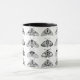 Caneca de café em um padrão detalhado e belo de mariposas em preto e branco, com sombras de cinza sobre fundo branco