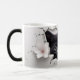 Caneca de boa qualidade, bom tamanho, não parece ser aquela louça que trinca ou descasca. Com os cuidados necessários, irá ter boa durabilidade. Antes de se colocar a bebida quente, ela fica preta, mas numa cor bem brilhante. Meu namorado é DJ e encomendei esta caneca pra um café da manhã com o pessoal da equipe! Sei q será o maior sucesso...em breve sei q vão pedir pra eu encomendar pra eles, e penso em fazer com o nome da empresa também. A caneca é muito legal, a coisa da trasmutação...mas o q não ficou muito legal foi a impressão da imagem da foto, não ficou como a foto q enviei...sei q mandei uma foto q é uma sombra, mas se as cores q estão em voltam aparecessem, ficaria bom. Na parte da frente ficou boa, mas atrás dele, a iluminação azul não saiu, ficando assim muito escuro, e não dá pra ver q é a sombra de uma pessoa. Se a Zazzle tivesse me enviado um e-mail dizendo q isso aconteceria, eu teria enviado uma foto mais clara, mas como a imagem de teste q tenho no site está nítida, pensei q fosse ficar assim. O chato q a caneca é presente, e a pessoa q ganhou, não consegue se ver na foto. Ficou sem propósito no final das contas. =(