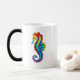 Articulação artificial, brilhante, arco-íris, cavalo de mar poligonal sobre fundo branco. Tatuagem brilhante.