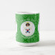 A caneca de morfina mágica apresenta um Anjo sul-coreano, vestido na bandeira da República da Coreia, dentro, um círculo fractal de quadrados rabugentos. O círculo está sobre um fundo fractal verde de quadrados rabugentos. Adicione um nome, feriado e ano para personalizar sua caneca como presente ou para adicionar à decoração de feriados. Adorável para decoração de Natal. Design nos três lados da caneca. Use a opção "editar design" para alterar a fonte e/ou a cor do nome, feriado e ano.