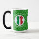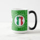 A caneca de morfina mágica apresenta um Anjo italiano, vestido na bandeira da Itália, dentro, um círculo fractal de quadrados rabugentos. O círculo está sobre um fundo fractal verde de quadrados rabugentos. Adicione um nome, feriado e ano para personalizar sua caneca como presente ou para adicionar à decoração de feriados. Adorável para decoração de Natal. Design nos três lados da caneca. Use a opção "editar design" para alterar a fonte e/ou a cor do nome, feriado e ano.