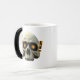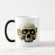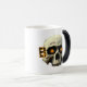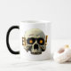 Uma caneca preta com uma surpresa! Coloque uma bebida quente e aparecerá um crânio! Os olhos podem dizer tanto... assim como este crânio assustador sem maxilar aparece e diz Boo com suas soquetes laranja brilhantes! Tenha um Feliz Dia das Bruxas com este assustador fantasma, e não se esqueça de fazer truques de gritar ou tratar! (Nota: nenhuma parte da imagem brilha.)