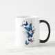 Borboletas azuis voadoras morfo e borboletas brancas em um fundo de abstrato leve. Morpho. Design com borboletas azuis morfo.