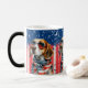 Caneca de boa qualidade, bom tamanho, não parece ser aquela louça que trinca ou descasca. Com os cuidados necessários, irá ter boa durabilidade. Antes de se colocar a bebida quente, ela fica preta, mas numa cor bem brilhante. Meu namorado é DJ e encomendei esta caneca pra um café da manhã com o pessoal da equipe! Sei q será o maior sucesso...em breve sei q vão pedir pra eu encomendar pra eles, e penso em fazer com o nome da empresa também. A caneca é muito legal, a coisa da trasmutação...mas o q não ficou muito legal foi a impressão da imagem da foto, não ficou como a foto q enviei...sei q mandei uma foto q é uma sombra, mas se as cores q estão em voltam aparecessem, ficaria bom. Na parte da frente ficou boa, mas atrás dele, a iluminação azul não saiu, ficando assim muito escuro, e não dá pra ver q é a sombra de uma pessoa. Se a Zazzle tivesse me enviado um e-mail dizendo q isso aconteceria, eu teria enviado uma foto mais clara, mas como a imagem de teste q tenho no site está nítida, pensei q fosse ficar assim. O chato q a caneca é presente, e a pessoa q ganhou, não consegue se ver na foto. Ficou sem propósito no final das contas. =(