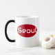 Um design de caneca vermelha que diz Seul. Seul é a capital da Coreia do Sul.