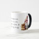 Caneca de boa qualidade, bom tamanho, não parece ser aquela louça que trinca ou descasca. Com os cuidados necessários, irá ter boa durabilidade. Antes de se colocar a bebida quente, ela fica preta, mas numa cor bem brilhante. Meu namorado é DJ e encomendei esta caneca pra um café da manhã com o pessoal da equipe! Sei q será o maior sucesso...em breve sei q vão pedir pra eu encomendar pra eles, e penso em fazer com o nome da empresa também. A caneca é muito legal, a coisa da trasmutação...mas o q não ficou muito legal foi a impressão da imagem da foto, não ficou como a foto q enviei...sei q mandei uma foto q é uma sombra, mas se as cores q estão em voltam aparecessem, ficaria bom. Na parte da frente ficou boa, mas atrás dele, a iluminação azul não saiu, ficando assim muito escuro, e não dá pra ver q é a sombra de uma pessoa. Se a Zazzle tivesse me enviado um e-mail dizendo q isso aconteceria, eu teria enviado uma foto mais clara, mas como a imagem de teste q tenho no site está nítida, pensei q fosse ficar assim. O chato q a caneca é presente, e a pessoa q ganhou, não consegue se ver na foto. Ficou sem propósito no final das contas. =(