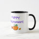 Aproveite a sua bebida quente favorita no outono com esta caneca fofa, apresentando um gato preto em fantasia de bruxas roxas com cheio de abóbora de doce, e, ao contrário, uma abóbora fofa com folhas de outono e o dito Feliz Dia das Bruxas!