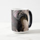 Caneca de boa qualidade, bom tamanho, não parece ser aquela louça que trinca ou descasca. Com os cuidados necessários, irá ter boa durabilidade. Antes de se colocar a bebida quente, ela fica preta, mas numa cor bem brilhante. Meu namorado é DJ e encomendei esta caneca pra um café da manhã com o pessoal da equipe! Sei q será o maior sucesso...em breve sei q vão pedir pra eu encomendar pra eles, e penso em fazer com o nome da empresa também. A caneca é muito legal, a coisa da trasmutação...mas o q não ficou muito legal foi a impressão da imagem da foto, não ficou como a foto q enviei...sei q mandei uma foto q é uma sombra, mas se as cores q estão em voltam aparecessem, ficaria bom. Na parte da frente ficou boa, mas atrás dele, a iluminação azul não saiu, ficando assim muito escuro, e não dá pra ver q é a sombra de uma pessoa. Se a Zazzle tivesse me enviado um e-mail dizendo q isso aconteceria, eu teria enviado uma foto mais clara, mas como a imagem de teste q tenho no site está nítida, pensei q fosse ficar assim. O chato q a caneca é presente, e a pessoa q ganhou, não consegue se ver na foto. Ficou sem propósito no final das contas. =(