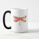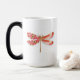 Articulado artificialmente, ouro, libélula joalhada com vermelho e asas decoradas com cereja japonesa vermelha, florescente e joalhada sobre fundo branco. Dourada Dragonfly.