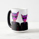 Caneca de boa qualidade, bom tamanho, não parece ser aquela louça que trinca ou descasca. Com os cuidados necessários, irá ter boa durabilidade. Antes de se colocar a bebida quente, ela fica preta, mas numa cor bem brilhante. Meu namorado é DJ e encomendei esta caneca pra um café da manhã com o pessoal da equipe! Sei q será o maior sucesso...em breve sei q vão pedir pra eu encomendar pra eles, e penso em fazer com o nome da empresa também. A caneca é muito legal, a coisa da trasmutação...mas o q não ficou muito legal foi a impressão da imagem da foto, não ficou como a foto q enviei...sei q mandei uma foto q é uma sombra, mas se as cores q estão em voltam aparecessem, ficaria bom. Na parte da frente ficou boa, mas atrás dele, a iluminação azul não saiu, ficando assim muito escuro, e não dá pra ver q é a sombra de uma pessoa. Se a Zazzle tivesse me enviado um e-mail dizendo q isso aconteceria, eu teria enviado uma foto mais clara, mas como a imagem de teste q tenho no site está nítida, pensei q fosse ficar assim. O chato q a caneca é presente, e a pessoa q ganhou, não consegue se ver na foto. Ficou sem propósito no final das contas. =(