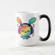 Caneca Mágica Feliz Bunny com fones de ouvido ouvindo música.