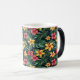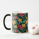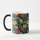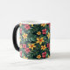 Flor Tropical Hibiscus Pattern Magic Mug. Padrão de flores tropicais sem costura com hibisco vermelho e amarelo com fundo de folhas tropicais,