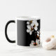 Flores Sakura de cor branca contra fundo preto. Sakura é uma cerejeira japonesa. A temporada de sakura florescendo é conhecida como Hanami - o festival de desfrutar da beleza da sakura no florescimento de cheios.