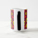 Caneca de café com formas geométricas e tons vermelhos e amarelos