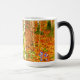 Magic Mug, com a pintura Farmhouse de Gustav Klimt com Birch Trees (1903). Uma paisagem autóctone de folhas de laranja numa floresta de pássaros com lindas flores azuis. Um presente maravilhoso para fãs de Arte Nouveau e de Arte Austríaca.