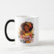 Caneca de boa qualidade, bom tamanho, não parece ser aquela louça que trinca ou descasca. Com os cuidados necessários, irá ter boa durabilidade. Antes de se colocar a bebida quente, ela fica preta, mas numa cor bem brilhante. Meu namorado é DJ e encomendei esta caneca pra um café da manhã com o pessoal da equipe! Sei q será o maior sucesso...em breve sei q vão pedir pra eu encomendar pra eles, e penso em fazer com o nome da empresa também. A caneca é muito legal, a coisa da trasmutação...mas o q não ficou muito legal foi a impressão da imagem da foto, não ficou como a foto q enviei...sei q mandei uma foto q é uma sombra, mas se as cores q estão em voltam aparecessem, ficaria bom. Na parte da frente ficou boa, mas atrás dele, a iluminação azul não saiu, ficando assim muito escuro, e não dá pra ver q é a sombra de uma pessoa. Se a Zazzle tivesse me enviado um e-mail dizendo q isso aconteceria, eu teria enviado uma foto mais clara, mas como a imagem de teste q tenho no site está nítida, pensei q fosse ficar assim. O chato q a caneca é presente, e a pessoa q ganhou, não consegue se ver na foto. Ficou sem propósito no final das contas. =(