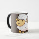 Coffee Mug com uma ovelha branca em fundo de cinza.