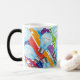 Caneca de boa qualidade, bom tamanho, não parece ser aquela louça que trinca ou descasca. Com os cuidados necessários, irá ter boa durabilidade. Antes de se colocar a bebida quente, ela fica preta, mas numa cor bem brilhante. Meu namorado é DJ e encomendei esta caneca pra um café da manhã com o pessoal da equipe! Sei q será o maior sucesso...em breve sei q vão pedir pra eu encomendar pra eles, e penso em fazer com o nome da empresa também. A caneca é muito legal, a coisa da trasmutação...mas o q não ficou muito legal foi a impressão da imagem da foto, não ficou como a foto q enviei...sei q mandei uma foto q é uma sombra, mas se as cores q estão em voltam aparecessem, ficaria bom. Na parte da frente ficou boa, mas atrás dele, a iluminação azul não saiu, ficando assim muito escuro, e não dá pra ver q é a sombra de uma pessoa. Se a Zazzle tivesse me enviado um e-mail dizendo q isso aconteceria, eu teria enviado uma foto mais clara, mas como a imagem de teste q tenho no site está nítida, pensei q fosse ficar assim. O chato q a caneca é presente, e a pessoa q ganhou, não consegue se ver na foto. Ficou sem propósito no final das contas. =(