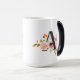 Caneca de boa qualidade, bom tamanho, não parece ser aquela louça que trinca ou descasca. Com os cuidados necessários, irá ter boa durabilidade. Antes de se colocar a bebida quente, ela fica preta, mas numa cor bem brilhante. Meu namorado é DJ e encomendei esta caneca pra um café da manhã com o pessoal da equipe! Sei q será o maior sucesso...em breve sei q vão pedir pra eu encomendar pra eles, e penso em fazer com o nome da empresa também. A caneca é muito legal, a coisa da trasmutação...mas o q não ficou muito legal foi a impressão da imagem da foto, não ficou como a foto q enviei...sei q mandei uma foto q é uma sombra, mas se as cores q estão em voltam aparecessem, ficaria bom. Na parte da frente ficou boa, mas atrás dele, a iluminação azul não saiu, ficando assim muito escuro, e não dá pra ver q é a sombra de uma pessoa. Se a Zazzle tivesse me enviado um e-mail dizendo q isso aconteceria, eu teria enviado uma foto mais clara, mas como a imagem de teste q tenho no site está nítida, pensei q fosse ficar assim. O chato q a caneca é presente, e a pessoa q ganhou, não consegue se ver na foto. Ficou sem propósito no final das contas. =(