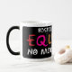 Caneca de boa qualidade, bom tamanho, não parece ser aquela louça que trinca ou descasca. Com os cuidados necessários, irá ter boa durabilidade. Antes de se colocar a bebida quente, ela fica preta, mas numa cor bem brilhante. Meu namorado é DJ e encomendei esta caneca pra um café da manhã com o pessoal da equipe! Sei q será o maior sucesso...em breve sei q vão pedir pra eu encomendar pra eles, e penso em fazer com o nome da empresa também. A caneca é muito legal, a coisa da trasmutação...mas o q não ficou muito legal foi a impressão da imagem da foto, não ficou como a foto q enviei...sei q mandei uma foto q é uma sombra, mas se as cores q estão em voltam aparecessem, ficaria bom. Na parte da frente ficou boa, mas atrás dele, a iluminação azul não saiu, ficando assim muito escuro, e não dá pra ver q é a sombra de uma pessoa. Se a Zazzle tivesse me enviado um e-mail dizendo q isso aconteceria, eu teria enviado uma foto mais clara, mas como a imagem de teste q tenho no site está nítida, pensei q fosse ficar assim. O chato q a caneca é presente, e a pessoa q ganhou, não consegue se ver na foto. Ficou sem propósito no final das contas. =(