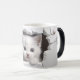 Caneca de boa qualidade, bom tamanho, não parece ser aquela louça que trinca ou descasca. Com os cuidados necessários, irá ter boa durabilidade. Antes de se colocar a bebida quente, ela fica preta, mas numa cor bem brilhante. Meu namorado é DJ e encomendei esta caneca pra um café da manhã com o pessoal da equipe! Sei q será o maior sucesso...em breve sei q vão pedir pra eu encomendar pra eles, e penso em fazer com o nome da empresa também. A caneca é muito legal, a coisa da trasmutação...mas o q não ficou muito legal foi a impressão da imagem da foto, não ficou como a foto q enviei...sei q mandei uma foto q é uma sombra, mas se as cores q estão em voltam aparecessem, ficaria bom. Na parte da frente ficou boa, mas atrás dele, a iluminação azul não saiu, ficando assim muito escuro, e não dá pra ver q é a sombra de uma pessoa. Se a Zazzle tivesse me enviado um e-mail dizendo q isso aconteceria, eu teria enviado uma foto mais clara, mas como a imagem de teste q tenho no site está nítida, pensei q fosse ficar assim. O chato q a caneca é presente, e a pessoa q ganhou, não consegue se ver na foto. Ficou sem propósito no final das contas. =(