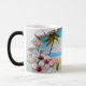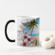Caneca de boa qualidade, bom tamanho, não parece ser aquela louça que trinca ou descasca. Com os cuidados necessários, irá ter boa durabilidade. Antes de se colocar a bebida quente, ela fica preta, mas numa cor bem brilhante. Meu namorado é DJ e encomendei esta caneca pra um café da manhã com o pessoal da equipe! Sei q será o maior sucesso...em breve sei q vão pedir pra eu encomendar pra eles, e penso em fazer com o nome da empresa também. A caneca é muito legal, a coisa da trasmutação...mas o q não ficou muito legal foi a impressão da imagem da foto, não ficou como a foto q enviei...sei q mandei uma foto q é uma sombra, mas se as cores q estão em voltam aparecessem, ficaria bom. Na parte da frente ficou boa, mas atrás dele, a iluminação azul não saiu, ficando assim muito escuro, e não dá pra ver q é a sombra de uma pessoa. Se a Zazzle tivesse me enviado um e-mail dizendo q isso aconteceria, eu teria enviado uma foto mais clara, mas como a imagem de teste q tenho no site está nítida, pensei q fosse ficar assim. O chato q a caneca é presente, e a pessoa q ganhou, não consegue se ver na foto. Ficou sem propósito no final das contas. =(