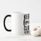 Caneca de boa qualidade, bom tamanho, não parece ser aquela louça que trinca ou descasca. Com os cuidados necessários, irá ter boa durabilidade. Antes de se colocar a bebida quente, ela fica preta, mas numa cor bem brilhante. Meu namorado é DJ e encomendei esta caneca pra um café da manhã com o pessoal da equipe! Sei q será o maior sucesso...em breve sei q vão pedir pra eu encomendar pra eles, e penso em fazer com o nome da empresa também. A caneca é muito legal, a coisa da trasmutação...mas o q não ficou muito legal foi a impressão da imagem da foto, não ficou como a foto q enviei...sei q mandei uma foto q é uma sombra, mas se as cores q estão em voltam aparecessem, ficaria bom. Na parte da frente ficou boa, mas atrás dele, a iluminação azul não saiu, ficando assim muito escuro, e não dá pra ver q é a sombra de uma pessoa. Se a Zazzle tivesse me enviado um e-mail dizendo q isso aconteceria, eu teria enviado uma foto mais clara, mas como a imagem de teste q tenho no site está nítida, pensei q fosse ficar assim. O chato q a caneca é presente, e a pessoa q ganhou, não consegue se ver na foto. Ficou sem propósito no final das contas. =(
