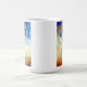 Mágica Mug, com a esposa de Claude Monet, Camille, segurando um parasol verde enquanto o seu véu azul é soprado pelo vento num campo verde e ouro. Um presente de Monet excelente para fãs do impressionismo e da arte francesa.