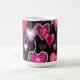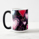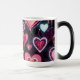 Um conjunto vibrante de corações cor-de-rosa e vermelho, esboçado com elementos brilhantes, flutua contra um fundo escuro. Vários tamanhos e estilos de coração criam uma atmosfera viva e romântica.