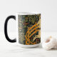 Magic Mug apresentando a tapeçaria medieval O Unicórnio em cativeiro (1495-1505). A sétima tapeçaria no The Unicorn Tapestries - também conhecida como The Unicorn Rest in a Garden - mostra um unicórnio branco com um colarinho azul sentado dentro a cerca. A grama verde e lindas flores rodeiam o unicórnio. Um presente fantástico para colecionadores de arte medievais e amantes da fantasia!