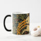 Magic Mug apresentando a tapeçaria medieval O Unicórnio em cativeiro (1495-1505). A sétima tapeçaria no The Unicorn Tapestries - também conhecida como The Unicorn Rest in a Garden - mostra um unicórnio branco com um colarinho azul sentado dentro a cerca. A grama verde e lindas flores rodeiam o unicórnio. Um presente fantástico para colecionadores de arte medievais e amantes da fantasia!