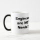Caneca de boa qualidade, bom tamanho, não parece ser aquela louça que trinca ou descasca. Com os cuidados necessários, irá ter boa durabilidade. Antes de se colocar a bebida quente, ela fica preta, mas numa cor bem brilhante. Meu namorado é DJ e encomendei esta caneca pra um café da manhã com o pessoal da equipe! Sei q será o maior sucesso...em breve sei q vão pedir pra eu encomendar pra eles, e penso em fazer com o nome da empresa também. A caneca é muito legal, a coisa da trasmutação...mas o q não ficou muito legal foi a impressão da imagem da foto, não ficou como a foto q enviei...sei q mandei uma foto q é uma sombra, mas se as cores q estão em voltam aparecessem, ficaria bom. Na parte da frente ficou boa, mas atrás dele, a iluminação azul não saiu, ficando assim muito escuro, e não dá pra ver q é a sombra de uma pessoa. Se a Zazzle tivesse me enviado um e-mail dizendo q isso aconteceria, eu teria enviado uma foto mais clara, mas como a imagem de teste q tenho no site está nítida, pensei q fosse ficar assim. O chato q a caneca é presente, e a pessoa q ganhou, não consegue se ver na foto. Ficou sem propósito no final das contas. =(