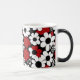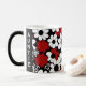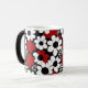 Flores vermelhas, pretas e brancas, padrão timítico de ladrilhos personalizados, caneca de café. Adicione um membro ou nome da família na área de personalização.