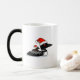 Caneca de boa qualidade, bom tamanho, não parece ser aquela louça que trinca ou descasca. Com os cuidados necessários, irá ter boa durabilidade. Antes de se colocar a bebida quente, ela fica preta, mas numa cor bem brilhante. Meu namorado é DJ e encomendei esta caneca pra um café da manhã com o pessoal da equipe! Sei q será o maior sucesso...em breve sei q vão pedir pra eu encomendar pra eles, e penso em fazer com o nome da empresa também. A caneca é muito legal, a coisa da trasmutação...mas o q não ficou muito legal foi a impressão da imagem da foto, não ficou como a foto q enviei...sei q mandei uma foto q é uma sombra, mas se as cores q estão em voltam aparecessem, ficaria bom. Na parte da frente ficou boa, mas atrás dele, a iluminação azul não saiu, ficando assim muito escuro, e não dá pra ver q é a sombra de uma pessoa. Se a Zazzle tivesse me enviado um e-mail dizendo q isso aconteceria, eu teria enviado uma foto mais clara, mas como a imagem de teste q tenho no site está nítida, pensei q fosse ficar assim. O chato q a caneca é presente, e a pessoa q ganhou, não consegue se ver na foto. Ficou sem propósito no final das contas. =(