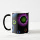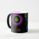 Planetas clandestinos aparecem do nada nesta caneca morfina com uma arte abstrato digital colorida que sugere planetas brilhantes translúcidos com atmosferas brilhantes em meio a gases do espaço exterior.