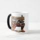 Caneca de boa qualidade, bom tamanho, não parece ser aquela louça que trinca ou descasca. Com os cuidados necessários, irá ter boa durabilidade. Antes de se colocar a bebida quente, ela fica preta, mas numa cor bem brilhante. Meu namorado é DJ e encomendei esta caneca pra um café da manhã com o pessoal da equipe! Sei q será o maior sucesso...em breve sei q vão pedir pra eu encomendar pra eles, e penso em fazer com o nome da empresa também. A caneca é muito legal, a coisa da trasmutação...mas o q não ficou muito legal foi a impressão da imagem da foto, não ficou como a foto q enviei...sei q mandei uma foto q é uma sombra, mas se as cores q estão em voltam aparecessem, ficaria bom. Na parte da frente ficou boa, mas atrás dele, a iluminação azul não saiu, ficando assim muito escuro, e não dá pra ver q é a sombra de uma pessoa. Se a Zazzle tivesse me enviado um e-mail dizendo q isso aconteceria, eu teria enviado uma foto mais clara, mas como a imagem de teste q tenho no site está nítida, pensei q fosse ficar assim. O chato q a caneca é presente, e a pessoa q ganhou, não consegue se ver na foto. Ficou sem propósito no final das contas. =(
