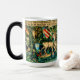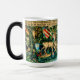 Magic Mug apresentando a tapeçaria de William Morris Verprocedure com Deer e Shields (1891-1894). Uma cena de bebendo de veados de uma piscina de água e comendo de folhas de árvores em uma floresta verde. Acima deles pendura os escudos dos Cavaleiros da Mesa redonda. Um presente magnífico para os entusiastas de Arthuriana e colecionadores vitorianos de arte.