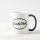 Verifique para fora esta caneca de Samantha! É seu nome Samantha? Ou você tem uma esposa, um namorada, um membro da família fêmea ou um amigo fêmea nomeados Samantha? Em caso afirmativo, esta "caneca do selo conhecido" é exatamente o presente que você está procurando! As características de design "Samantha" na rotulação preta grande cercada por dois ovals, um fino e um grosso.