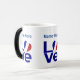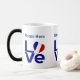 Esta morfina personalizada ou caneca mágica apresenta a palavra "AMOR" em letras azuis, com uma bandeira francesa em forma de coração como "O". Design nos três lados. É um presente de excelente para Dia de os pais, Dia de as mães ou comemorações do Dia da Bastilha. Perfeito para reuniões de amigos ou familiares, também faz um legal Natal ou presente de Chanucá.