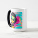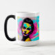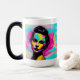 Caneca de café com citação inspiracional. Trabalho de arte grafite cor-de-rosa, azul, amarelo e preto. "Ai gerou arte. conteúdo genérico