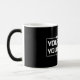 Caneca de boa qualidade, bom tamanho, não parece ser aquela louça que trinca ou descasca. Com os cuidados necessários, irá ter boa durabilidade. Antes de se colocar a bebida quente, ela fica preta, mas numa cor bem brilhante. Meu namorado é DJ e encomendei esta caneca pra um café da manhã com o pessoal da equipe! Sei q será o maior sucesso...em breve sei q vão pedir pra eu encomendar pra eles, e penso em fazer com o nome da empresa também. A caneca é muito legal, a coisa da trasmutação...mas o q não ficou muito legal foi a impressão da imagem da foto, não ficou como a foto q enviei...sei q mandei uma foto q é uma sombra, mas se as cores q estão em voltam aparecessem, ficaria bom. Na parte da frente ficou boa, mas atrás dele, a iluminação azul não saiu, ficando assim muito escuro, e não dá pra ver q é a sombra de uma pessoa. Se a Zazzle tivesse me enviado um e-mail dizendo q isso aconteceria, eu teria enviado uma foto mais clara, mas como a imagem de teste q tenho no site está nítida, pensei q fosse ficar assim. O chato q a caneca é presente, e a pessoa q ganhou, não consegue se ver na foto. Ficou sem propósito no final das contas. =(