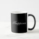 Caneca de boa qualidade, bom tamanho, não parece ser aquela louça que trinca ou descasca. Com os cuidados necessários, irá ter boa durabilidade. Antes de se colocar a bebida quente, ela fica preta, mas numa cor bem brilhante. Meu namorado é DJ e encomendei esta caneca pra um café da manhã com o pessoal da equipe! Sei q será o maior sucesso...em breve sei q vão pedir pra eu encomendar pra eles, e penso em fazer com o nome da empresa também. A caneca é muito legal, a coisa da trasmutação...mas o q não ficou muito legal foi a impressão da imagem da foto, não ficou como a foto q enviei...sei q mandei uma foto q é uma sombra, mas se as cores q estão em voltam aparecessem, ficaria bom. Na parte da frente ficou boa, mas atrás dele, a iluminação azul não saiu, ficando assim muito escuro, e não dá pra ver q é a sombra de uma pessoa. Se a Zazzle tivesse me enviado um e-mail dizendo q isso aconteceria, eu teria enviado uma foto mais clara, mas como a imagem de teste q tenho no site está nítida, pensei q fosse ficar assim. O chato q a caneca é presente, e a pessoa q ganhou, não consegue se ver na foto. Ficou sem propósito no final das contas. =(