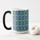O design fornecido apresenta um padrão geométrico repetitivo. Consiste em diamante e formas de lágrima dispostas de forma estelada. As cores primárias usadas são azul, verde e branco. Cada forma de diamante é esboçada em azul, envolvendo um diamante verde menor, que por sua vez inclui uma forma de lágrima branca. O design geral cria um sentido de profundidade e complexidade. Pode servir de inspiração para padrões ou elementos decorativos.