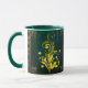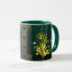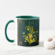 Fundo verde-escuro e semi branco de mug colorido com Design de Ouro na área de borda e no padrão de flores do meio brilhante que parece muito mágico na natureza e atrativo.