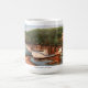 Verdes de Arte Moderna e impressão de Pintura Original da Vila de Pesca. Coffee Mug. Neste quadro cativante, quatro arrastões de pesca resistentes estão ancorados ao longo do cais na maré baixa. Os Barcos são pintados em verduras e brancos macios, O Lado Baixo Revela um fundo marinho lamacento, criando um contraste terrestre com os barcos vibrantes. Atrás do Cais, as montanhas verdes esticadas esticam-se no horizonte, acrescentando profundidade e tranquilidade à cena. Toda a imagem, feita em acrílicas ricas e texturizadas, captura um momento de calma, e lindamente Impressa numa caneca de café, transformando este simples objeto em uma obra de arte. Aproveite suas Aventuras Compradas! Artista Tanya Arseneau Nanniesfineart